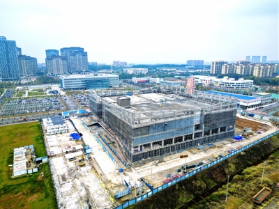 3月6日,记者在我市全民健身中心项目施工现场看到,项目主体结构已完工,施工人员在内部紧张施工。该项目主体建筑4层,将建成我市第一个标准化游泳池,第一个屋顶足球场,内场含有跆拳道馆、瑜伽馆等,外场将按照公园城市理念建设体育公园、健康步道等。 记者 张仰强 摄