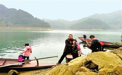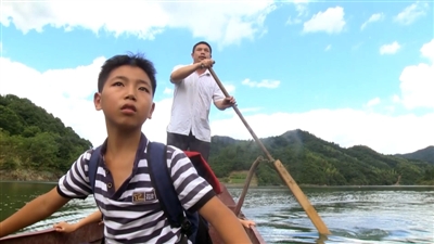 为了让住在偏远库区的学生有学上,王值军自费做了一个小木船,每天除了上课,王值军花费时间最多的事情,是在船上“摆渡”接送学生。