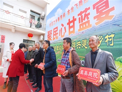 二月二龙抬头,迎春耕祈丰收。3月11日,嘉鱼县潘家湾镇肖家洲村殷家阁“共同缔造”示范点内,143户居民齐聚一堂,舞金龙、品甘蓝,共谋、共建、共管、共评、共享村湾发展。