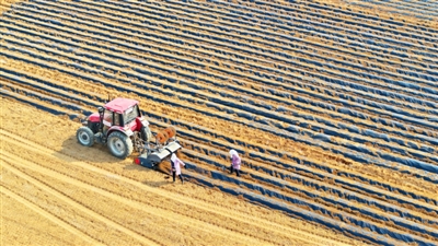 3月14日,在日照市东港区南湖镇纳格中草药基地,农民在培土覆膜,准备种植丹参。时下,在山东省日照市东港区,农民抢抓农时进行春耕春管,田间地头一派繁忙的劳作景象。
