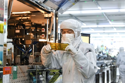 湖北三赢兴光电科技股份有限公司咸宁高新区公司生产车间, 工人在赶制摄像头、指纹锁等订单。 记者 陈红菊摄