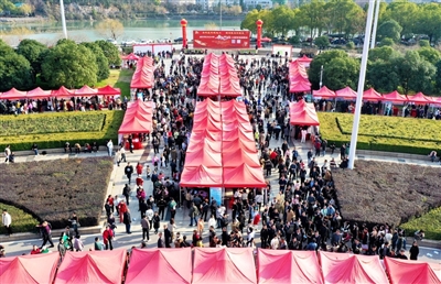 春风行动大型招聘会在市人民广场举行,求职者与招聘企业双向奔赴。 记者 夏正锋 摄