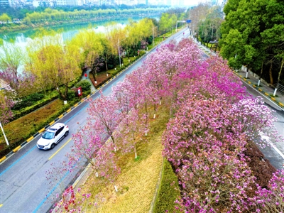 3月16日,市区双鹤路两侧玉兰花竞相绽放,一树树、一枝枝亭亭玉立,美不胜收。眼下,全市各地广场公园鲜花绽放、繁花似景,市民纷纷走出家门,感受春天气息。记者 张仰强 摄