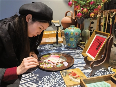如今,吴陈妮又走在了创新的路上。她正在尝试将掐丝珐琅与玻璃裂彩画结合,创作出更加高端大气的艺术作品。经过最近几个月的摸索,作品已基本成型,下半年就会有新作品上市。