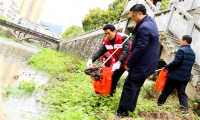 3月14日,新时代十六字治水思路提出十周年。当天上午,通城县直机关干部与社会志愿者一道,开展热火朝天的洁河活动。在长江一级支流隽水河两岸,数百名“红马甲”挥汗清扫,“小红帽志愿者协会”“绿水青山协会”会旗飘扬。过往群众或主动加入,或纷纷拍照转发。