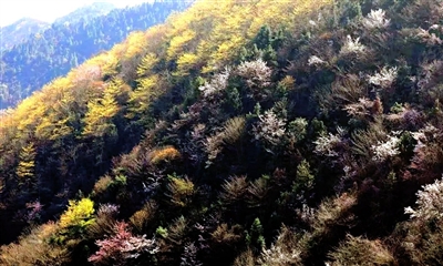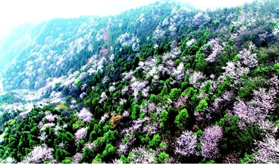 樱花特点:这里的野樱以华中樱为主,为单瓣山樱花。分为早晚两个品种,白色山樱属于早樱品种,花开大约十天后开始凋谢,红色山樱紧接着次第开放,两种山樱的花期从惊蛰开始直到清明前夕,花期长达一个月。
