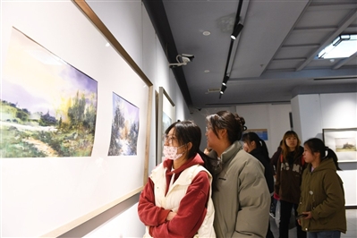 本次展览活动集中展出了9位来自美国的水彩画家和书画家、16位中国水彩画家的68件水彩画作品,其中包括中美艺术家联合创作的大型水彩画《自然生态公园城市——咸宁》。 记者 陈红菊摄