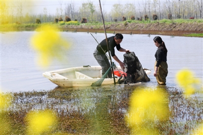 3月26日,赤壁市柳山湖镇团山村,虾农在捕捞成熟的小龙虾。