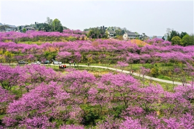 图①:3月31日,游客在贵州省遵义市播州区乐山镇踏青游玩(无人机照片)。