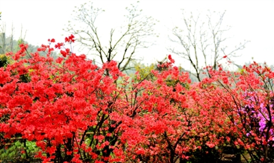 山坡上、峭壁上,红的、粉的杜鹃花交相辉映,有的含苞待放,像一颗颗红色宝石镶嵌枝头;有的微微初绽,如云似霞;杜鹃花和苍翠碧绿的树木构成了一幅色彩斑斓的生态画卷,吸引了不少市民和游客来这里观景、拍照,尽情享受大自然的馈赠。
