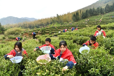 春茶进入采摘期,马港初级中学把劳动教育与茶文化相结合,组织学生到茶场,体验采摘春茶、制茶、包装春茶,体验农耕文化,助力茶农增收。