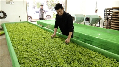走进制茶车间,绿茶的清香味扑鼻而来,沁人心脾。今年60岁的“茶二代”刘纯艺一边忙着将鲜叶进行摊晾、杀青、理条、干燥,一边乐呵呵地告诉我们,抓住了这一个月的春茶黄金期,一年几十万的收入就到手了。