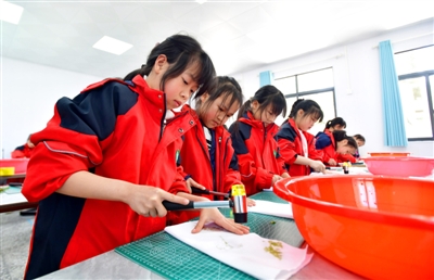 据了解,为激发学生们的创造力,丰富学生的第二课堂,该校开设传统习俗、手工、美术等课程,让学生在实践中学习课内外知识,寓教于乐。
