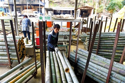 近日,赤壁市陆水湖街道玄素洞村永兴竹业农民专业合作社内一派繁忙,工作人员们正加紧赶制订单。据了解,陆水湖街道共有竹产业加工企业15家,主要产品为楠竹及竹制品(竹跳板、竹丝、竹筷)等。 记者 张仰强 摄