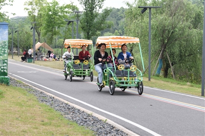 “景区项目很丰富,尤其是亲子项目特别多,大人小孩都能参与,互动性强,我们全家人都玩得很开心。”游玩后,从江西修水过来的徐先生一家尽兴而回。