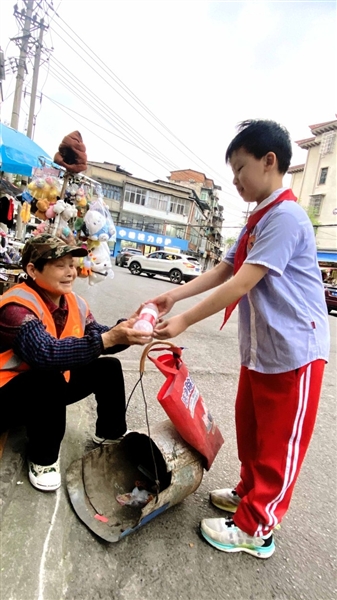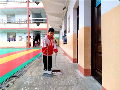 一次,他妈妈清理书包时,发现书包里有不少垃圾袋,便问他垃圾袋作何用。他回答道:“看到教室里有垃圾,为了使教室里整洁一些,便把家里的垃圾袋拿到学校,把班上的纸屑、果皮之类装进去,这样就会干净一些,这是我作为班长该做的。”