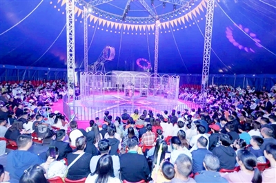 5月3日,嘉鱼蜜泉湖景区内,游客有序围坐文明观看表演,现场秩序井然。 陈婧摄