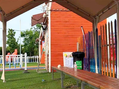 “五一”期间,城区青龙路一游乐园内,个别游客乱扔垃圾。
