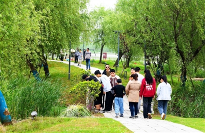 大洲湖湿地公园是主城与北部空间和东部生态湿地景观空间之间重要的生态屏障和缓冲空间,是城市防洪体系重要组成部分,也是区域水生态安全系统的重要构成空间。眼下,大洲湖湿地公园已成为网红打卡地,游客络绎不绝。
