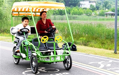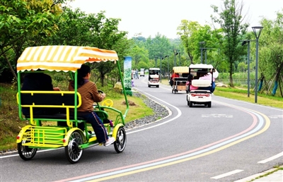 5月1日,咸宁大洲湖湿地公园碧水、绿树、青草、红花相得益彰,游客走进大洲湖湿地公园,在环湖绿道骑行、搭帐篷露营、散步赏景……与大自然拥抱。