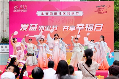 本报讯 通讯员樊思遥、章琼丹、徐鹏、彭丹报道:邻睦风亦暖,家和人自康。5月21日,永安街道在三角洲广场开展“爱益邻里节 共享幸福日”社区邻里节活动。