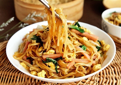 清澈有滋味的汤头、口感爽滑的肉片、蒜蓉的辛辣香气,一碗清爽的炒河粉尤其适合炎炎夏日。