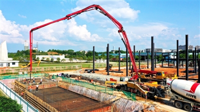 5月25日,咸宁高新区华彬桂花深加工生产基地,工人们正在加紧建设厂房。