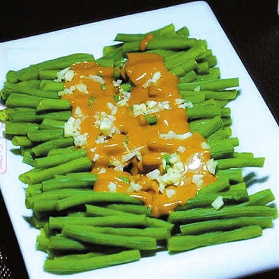炎热的夏天,大家常会食欲不振,这时候来份麻酱拌豆角再好不过了。胖乎乎的豆角,肉多口感好,加了大蒜末,淋上麻酱,吃起来开胃爽口。