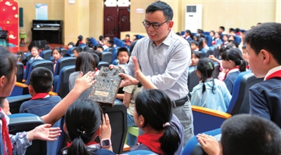 在咸宁实验外国语学校玉泉校区,赵李桥砖茶制作技艺、镇氏风湿病马钱子疗法等一批非遗传承人,面对面为学生说非遗、展非遗,让孩子们感受到非物质文化遗产的独特魅力。