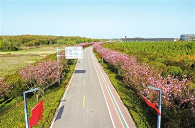 顺着通村公路前行,旅游步道两侧的樱花树在微风的吹拂下簌簌作响,宛如在欢迎众人到来。