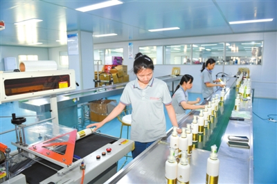 5月28日,赤壁高新区美丽健康产业园,湖北中研科院药业有限公司自动化生产线上,工作人员正在检查、打包该公司生产的洗漱用品。该公司于2021年建成投产,项目总投资2.4亿元,预计今年可实现产值3.5亿元。 记者 张仰强 摄