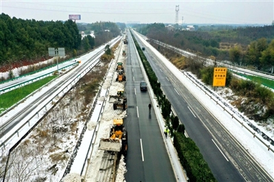 2月24日,咸宁交通铲冰保畅决定性战役——武深高速135公里冰雪歼灭战全线打响,2月25日8时全线双向四车道打通。