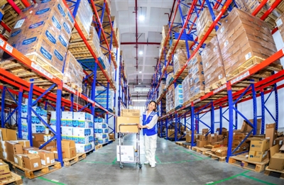 6月18日,在浙江省温州综合保税区京东仓内,工作人员按照订单配送货品。时值电商平台“618”年中促销活动高峰,各地电商、物流等线上线下企业、商家全力应对。 据新华社