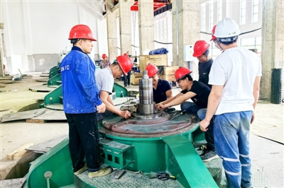 近日,嘉鱼县余码头泵站更新改造工程现场,工人正抓紧施工。 记者 谭宏宇 摄