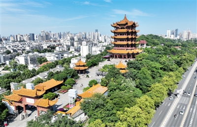 6月3日在武汉市拍摄的黄鹤楼(无人机照片)。