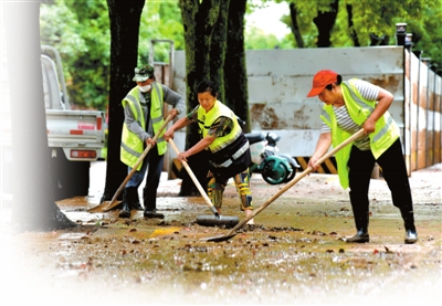 记者在现场看到,待地下车库积水完全被抽排干净后,社区工作人员、物业人员一起清理走积水带来的淤泥、垃圾等,打扫好环境卫生,以最大程度减少对居民生活的影响。