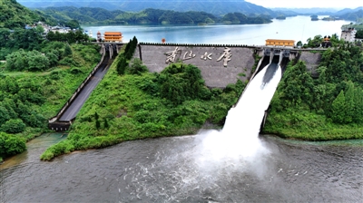 11时整,第一溢洪道中孔闸门缓缓升起,湍急水流咆哮而出,青山水库正式启动泄洪。