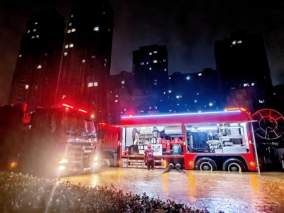 当晚,按照有关应急预案,市消防救援支队接到指令后,立即调派金桂路特勤站消防员赶赴现场进行处置,通过移动排水泵、远程排水系统等工具抢排积水。
