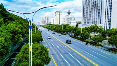 7月2日上午,咸宁大道整洁如洗,在蓝天白云的映衬下,勾勒出美丽城市风景线。
