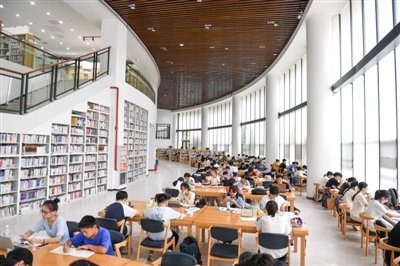 7月9日,众多市民在市图书馆看书学习、避暑纳凉。连日来,我市持续高温,市区各图书馆、香城书房凉爽舒适的环境和充足的图书,成了学生及市民看书学习与避暑的好去处。 记者 张仰强 摄