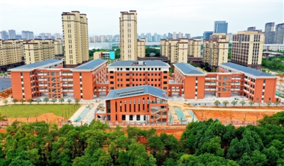 7月15日,咸宁玉桂学校,工人正在进行外围收尾工作。该校位于金桂路甘鲁棚改小区东侧,总投资1.2亿元,是一所九年一贯制义务教育学校,办学规模3605人,建成投入使用后,将极大地改善该片区学位紧张状况。 记者 夏正锋 摄