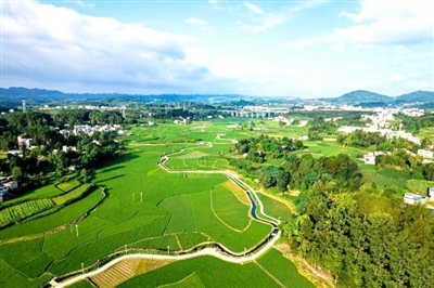 近日,位于贵州省黔西市金碧镇铧口寨社区的高标准农田,绿意盎然的稻田与整洁的村庄以及道路桥梁相映成趣,构成一幅夏日乡村田园画卷。