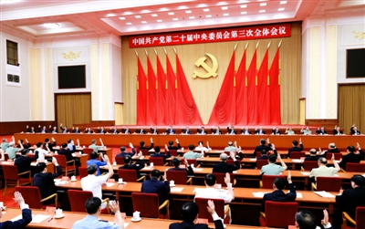 全会听取和讨论了习近平受中央政治局委托所作的工作报告,审议通过了《中共中央关于进一步全面深化改革、推进中国式现代化的决定》。习近平就《决定(讨论稿)》向全会作了说明。