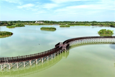 7月23日,向阳湖现代农业科技示范区内,一片生机盎然的景象。8200亩农作物一望无垠,人工渠旁垂钓者迎着微风抛竿垂纶,绿道上游人沿湖信步安享惬意,目之所及皆风景。