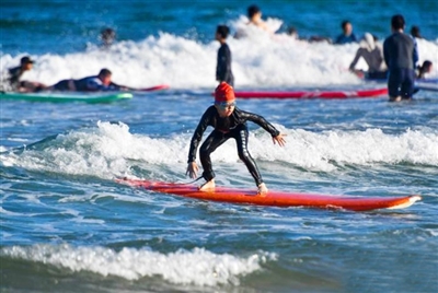 正值暑期旅游季,海南侨乡万宁日月湾作为中国知名“冲浪胜地”,吸引众多游客前来体验冲浪运动。