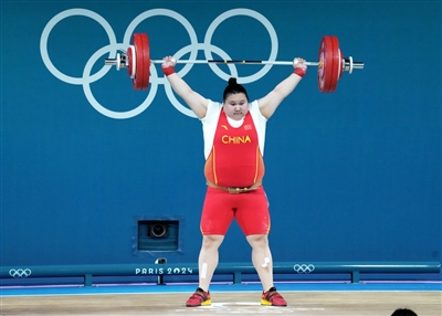 ②8月11日,中国选手李雯雯在比赛中。当日,在巴黎奥运会举重项目女子81公斤以上级比赛中,中国选手李雯雯夺得金牌。