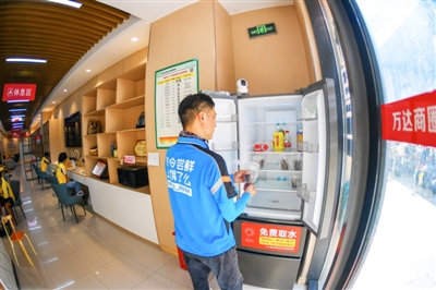 8月9日下午,咸安区温泉街道万达商圈红色驿站内清凉舒适,站内配备沙发、冰箱、空调、电视、饮水机、储物柜、微波炉等,供户外工作者们在此纳凉休息。