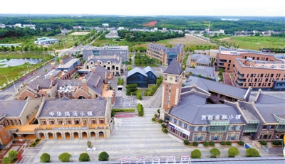 鸡汤小镇总建筑面积约5.4万平方米,分散式布置13栋2至4层的建筑单体。整体建筑采用民国风情街道与建筑形式,结合开放式的街区形态,引进系列品牌鸡入驻,致力于打造全国首个以“鸡”为主题的美食乐园。