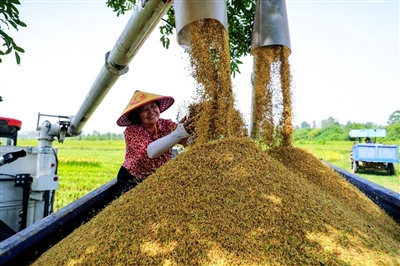 图③ 8月11日,在河南省信阳市光山县罗陈乡张楼村青龙河合作社,社员在抢收头茬再生水稻。