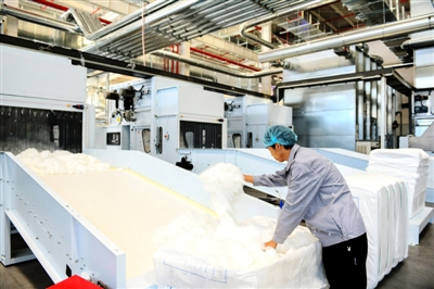 企业以积极态度进行自我技术革新,引入全球领先的德国特吕茨施勒水刺无纺布设备,从原棉精梳脱漂加工、水刺烘干、验布分切等全链条生产环节做好精准把控,实现从原料选取至成品产出的全流程高效作业,成就非织造布产品的卓越品质。